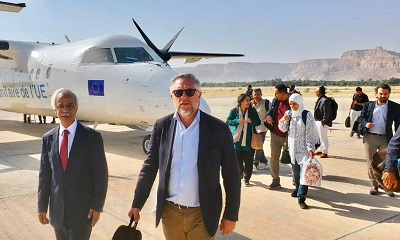 والوفد المرافق له برئاسة السيد باتريك سيمونت ، في مطار سيئون الدولي،